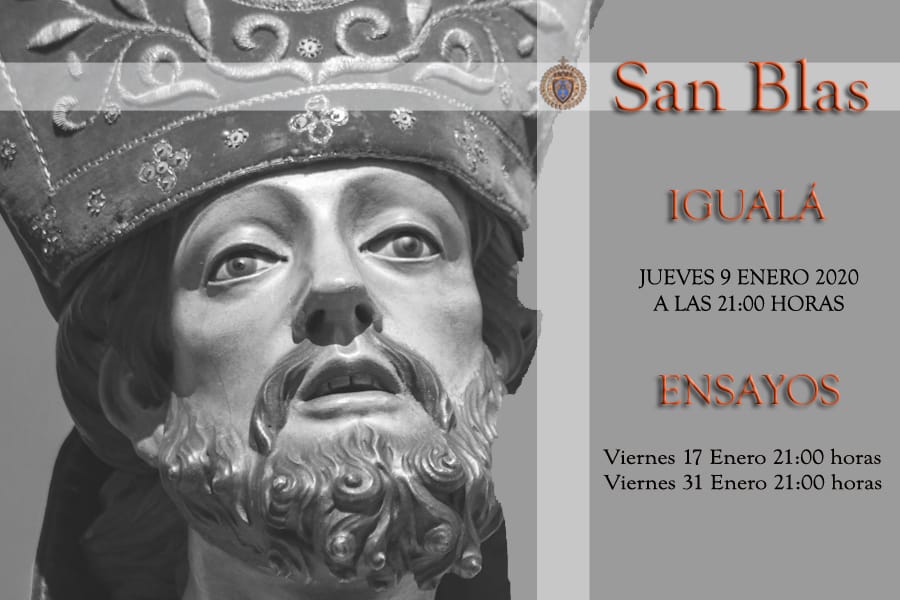 El próximo 9 de enero se celebrará en la Iglesia de San Mateo la igualá de la cuadrilla del patrón de las enfermedades de garganta, San Blas de Sebaste, a las 21:00 h.