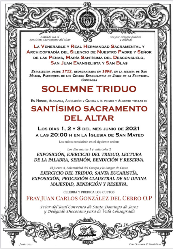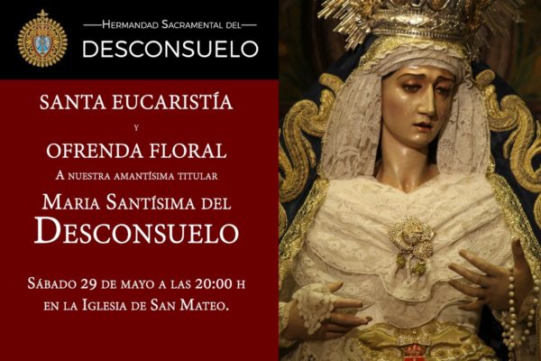 La Hermandad del Desconsuelo pone a disposición de hermanos y devotos la retransmisión en directo del Solemne Triduo en Honor al Santísimo Sacramento del Altar.