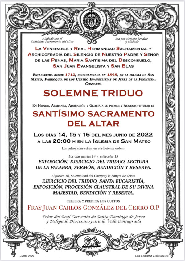 Solemne Triduo en Honor al Santísimo Sacramento del Altar