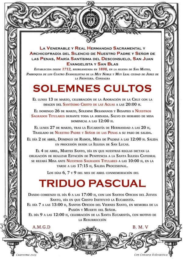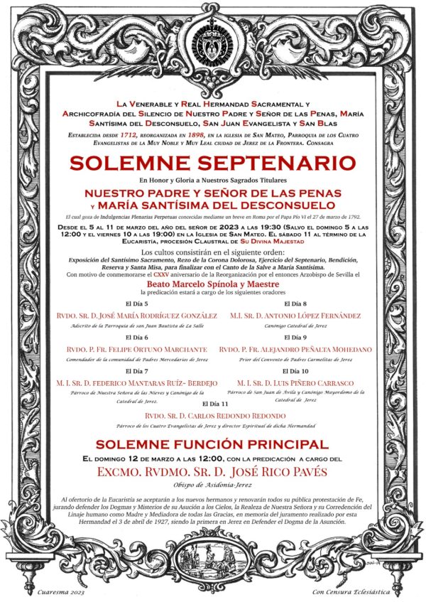 Con motivo de la celebración del 125 aniversario de la reorganización de nuestra Hermandad, nuestro obispo D. José Rico Pavés presidirá la Función Principal que, para tal fin, hemos trasladado de forma excepcional al domingo 12 de marzo a las 12:00 H.Además de solicitar expresamente […]