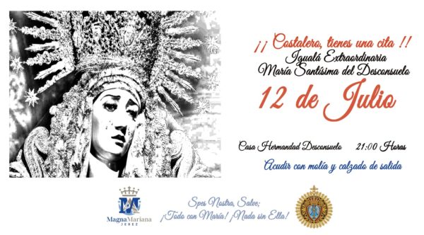 Con motivo de la próxima celebración de la procesión Magna Mariana por el Centenario de la Coronación de la imagen de Nuestra Señora del Carmen de Jerez, María Santísima del Desconsuelo participará en la misma. Es por ello que animamos a todos los aspirantes que […]