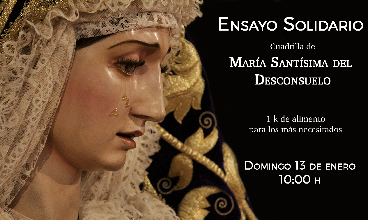La cuadrilla de costaleros de María Santísima del Desconsuelo llevará a cabo el domingo 13 de enero, un ensayo solidario con el fin de recaudar alimentos para los más desfavorecidos. Cada costalero aportará 1 kilo de comida al ensayo, que dará comienzo a las 10 […]