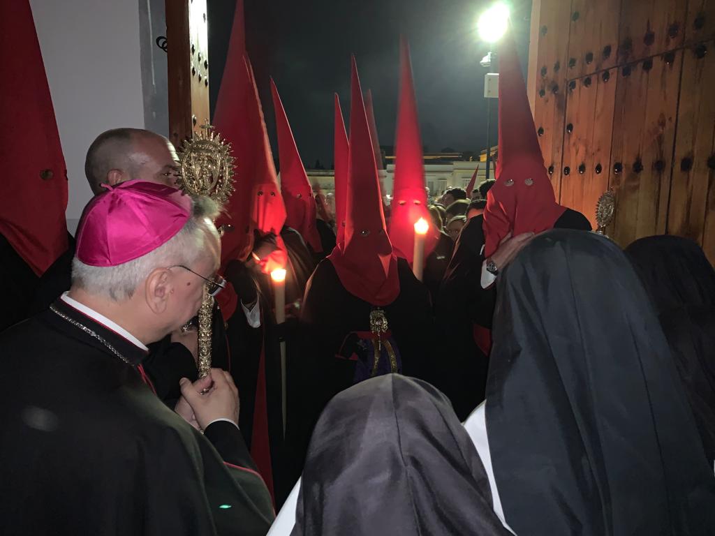 El pasado Martes Santo, en la visita que la Hermandad del Desconsuelo hace en la vuelta de su Estación de Penitencia a las Hermanas de la Cruz, con motivo del 125 Aniversario de la Reorganización de la Hermandad, de manos del Arzobispo de Sevilla Don Marcelo Spinola y Maestre en 1898, y por el 75 Aniversario de la llegada de las Hermanas de la Cruz a Jerez, la Hermandad entregó a las religiosas, una reliquia del Beato Spinola, que también aprobara esta Compañía con Santa Ángela a la cabeza. Acompañó a este entrañable acto e hizo de padrino de la entrega, Don José Rico Pavés, Obispo de la Diócesis, junto con el párroco Don Carlos Redondo, Doña Elena Gómez y Don Orlando Lucena de la Delegación Diocesana de HH y CC, el Presidente de la Unión de Hermandades Don José Manuel García, la Junta de Gobierno de la Hermandad y varios miembros del Consejo.