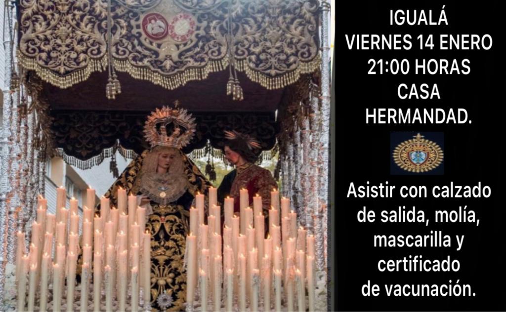 El viernes 14 de enero de 2022 a las 21:00 horas, tendrá lugar en la casa de hermandad la igualá de la cuadrilla de costaleros de María Santísima del Desconsuelo.