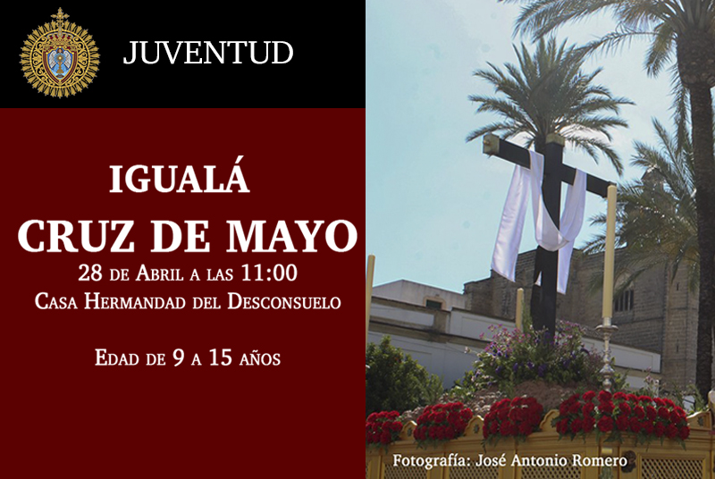 La Delegación de Juventud de nuestra Hermandad pone fecha a la igualá de la Cruz de Mayo que tradicionalmente saca nuestro Grupo Joven. Todos los interesados entre los 9 y los 15 años podrán igualar este domingo 28 de abril a las 11 de la mañana en nuestra Casa de Hermandad, así mismo se realizará el primer ensayo esa misma mañana.