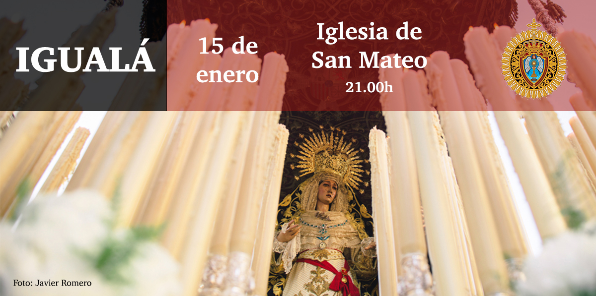 El equipo de capataces del paso de María Santísima del Desconsuelo convoca la igualá del paso de palio para el próximo viernes 15 de enero a las 21.00h en la iglesia de San Mateo. Se convoca por tanto a la cuadrilla del año 2015 y a quienes quieran aspirar a ser costalero del paso de la Dolorosa. Desde el propio equipo de capataces se cita la obligatoriedad de llevar molía y zapatillas negras de salida.