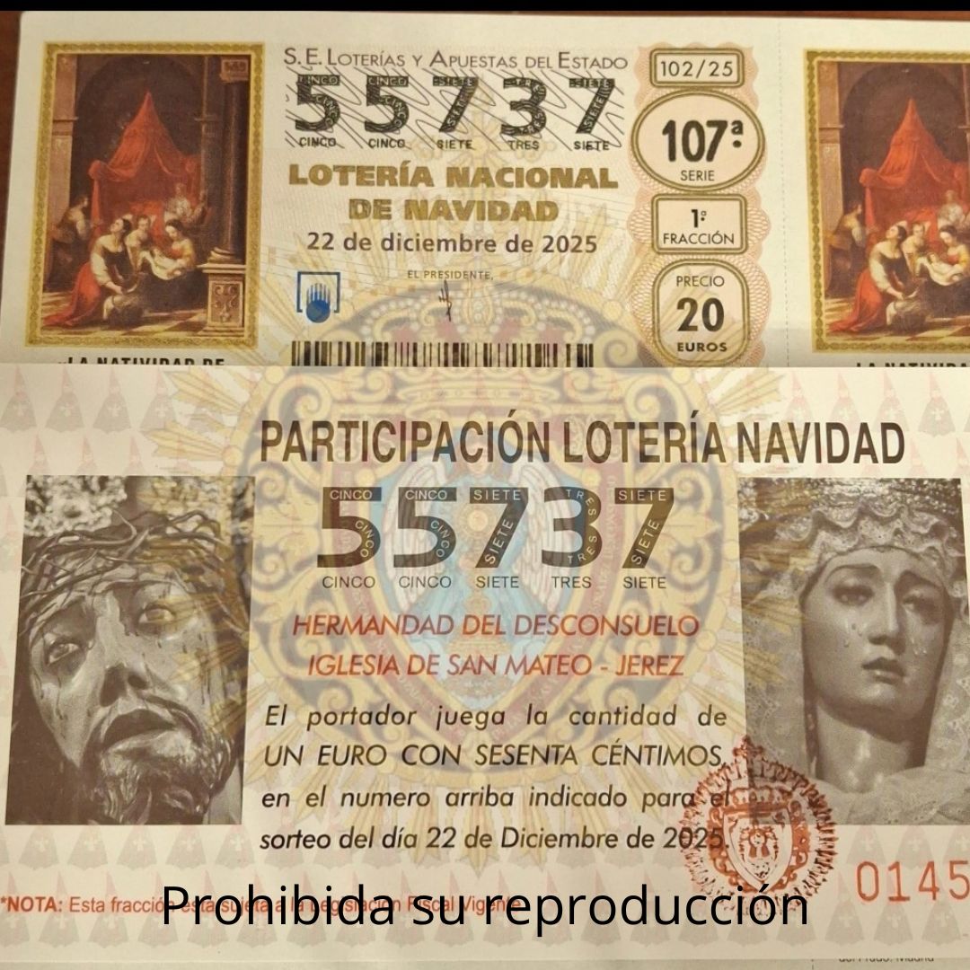 Ya se encuentra disponible para todos los hermanos que lo deseen adquirir la lotería de Navidad para el próximo 22 de diciembre de 2025. Este año contaremos con una novedad, además de las tradicionales participaciones que se han adquirido siempre en modo de talonario, en esta ocasión se podrá adquirir un décimo con el número de «55737» siendo el mismo que de las participaciones.