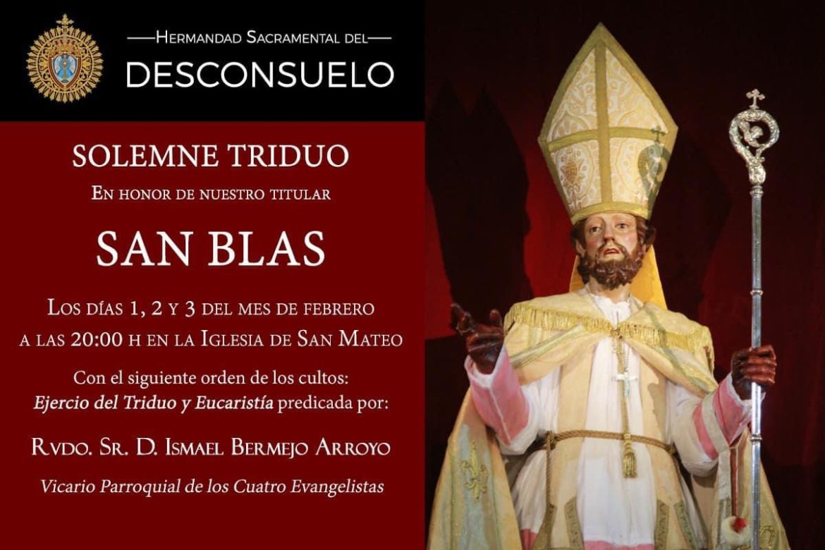 TRIDUO|| Os recordamos que el día 1 de Febrero a partir de las 20:00 horas, dará comienzo el Triduo a Nuestro Patrón San Blas en la memoria por el eterno descanso a D. Juan Del Río Martín.
