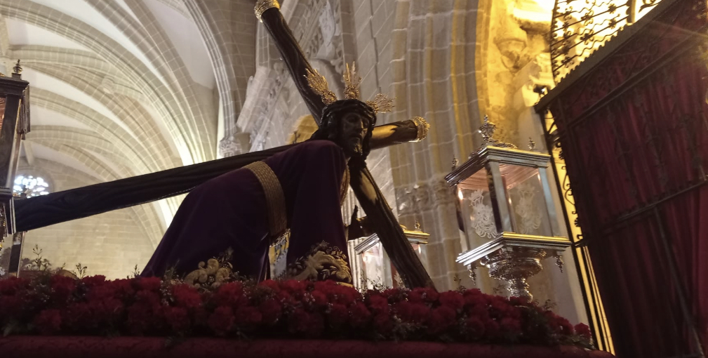 Con las puertas de la iglesia abiertas de par en par, el Guión de la hermandad junto a una nutrida representación de hermanos, que portaban varas y cirios, esperaban impacientes junto al dintel al Nazareno caído que tallara Ramón Chaveli en 1940.